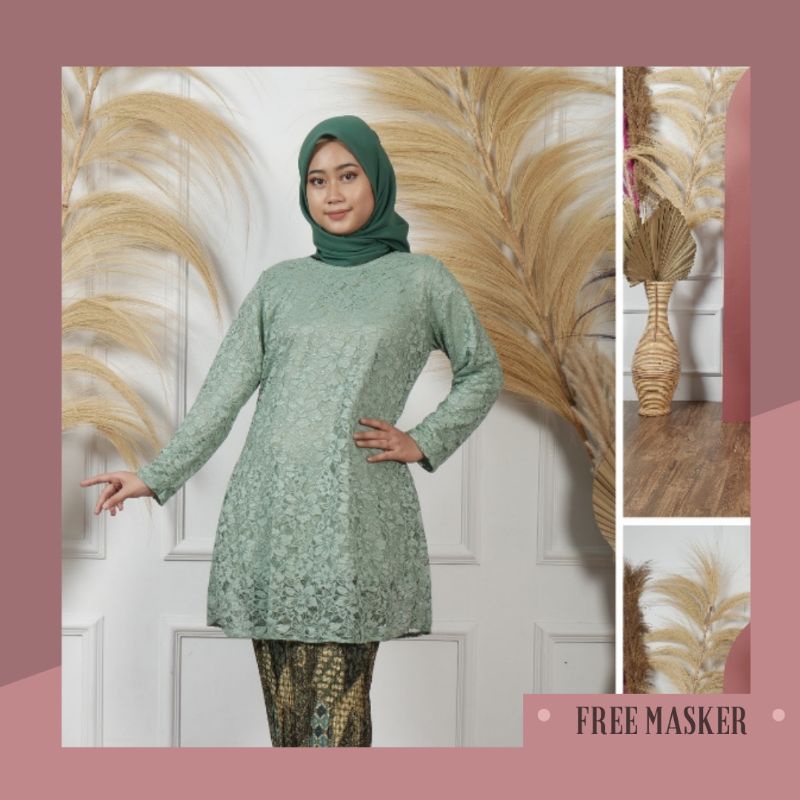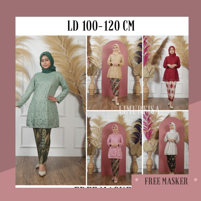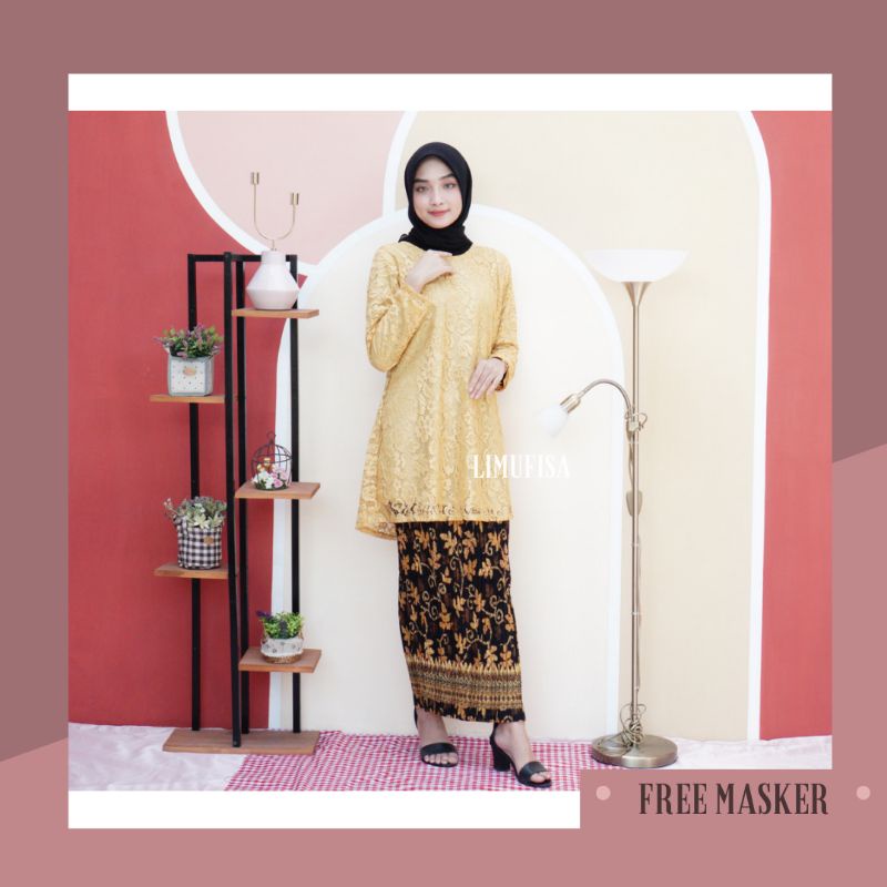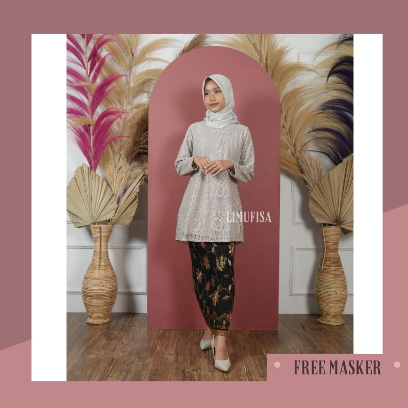 tunik brukat setelan modern kekinian terbaru murah ada ukuran jumbo ld 120cm bisa digunakan untuk hijab dan non hijab terdapat warna grey greentea maroon mocca pink dan gold serta free masker
