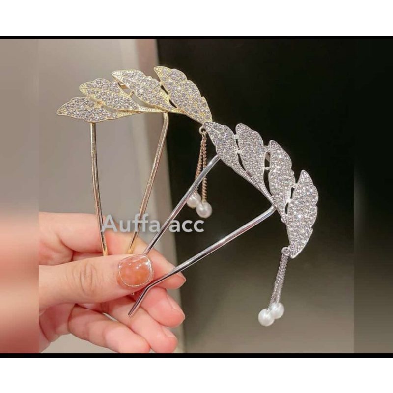 tusuk konde terbaru besi motif daun ada 2 warna