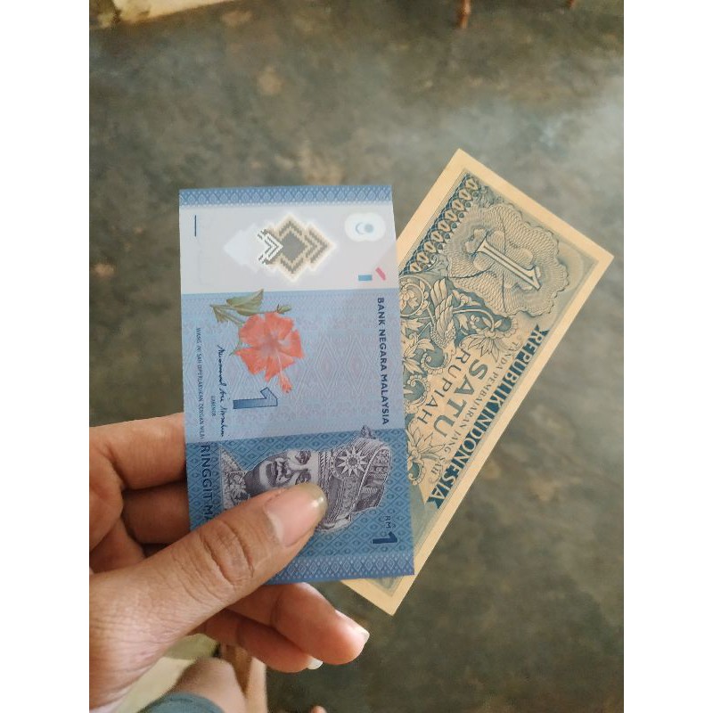 uang 1 ringgit malaysia dan uang 1 rupiah indonesia
