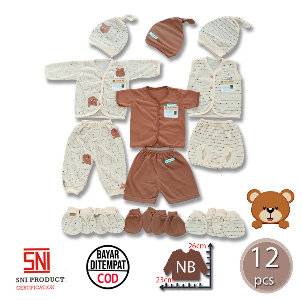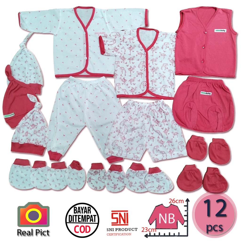 ummababyshop 12 PCS Perlengkapan Bayi Baru Lahir Baju Bayi Perempuan Laki laki Kado Lahiran Setelan Anak Bedong Set Popok Sarung Tangan Kaki Topi Gift Set Newborn 0 6 Murah umma baby ummababy Kuning Diskon 12.12