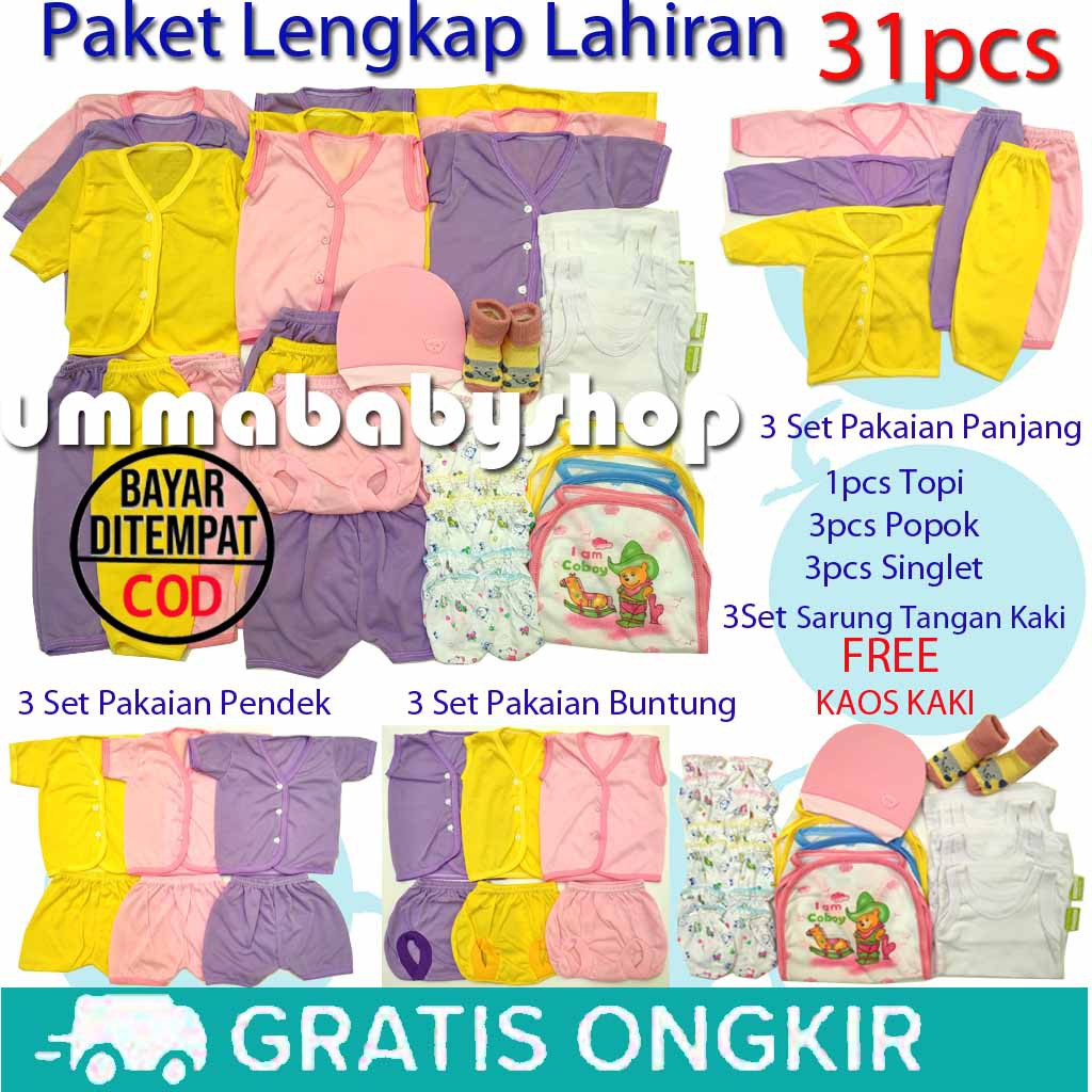 ummababyshop 39 pcs Paket Perlengkapan Bayi Lahir Setelan Baju Bayi Celana Bayi Popok Singlet Kado Newborn Gift Set Perempuan Laki baju bayi celana bayi sarung tangan kaki topi Diskon 12.12