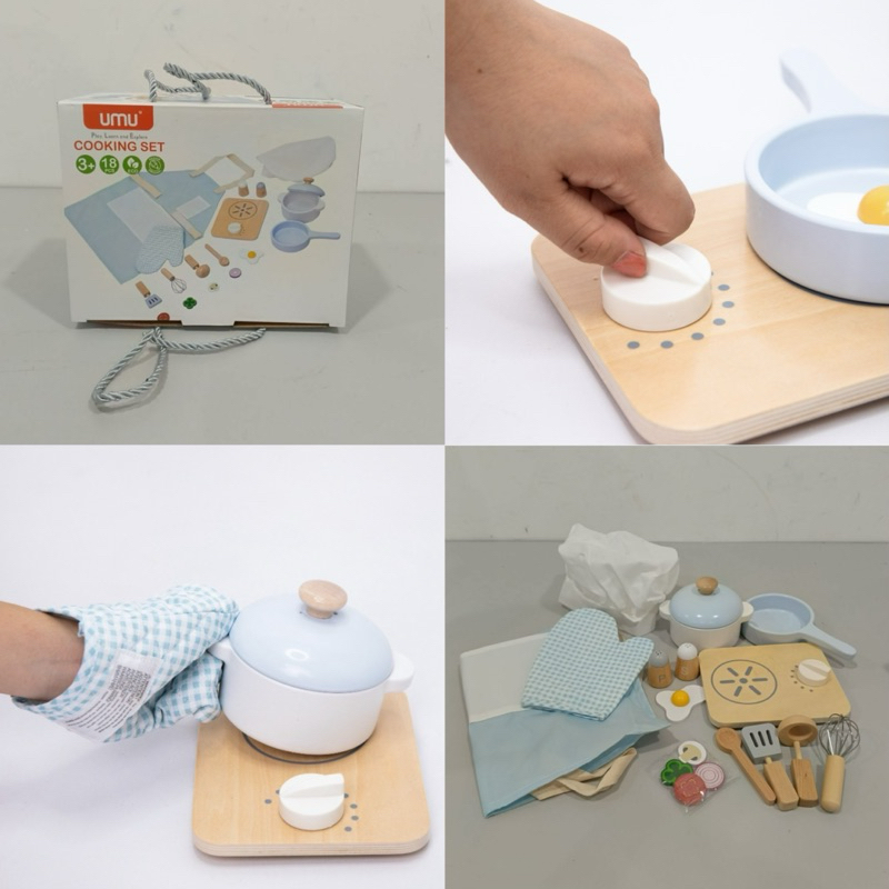 umu wooden cooking set pretend plays mainan role play masak2an dengan apron mainan peran dapur