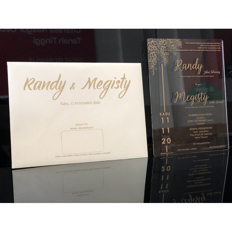 undangan akrilik tebal 2mm/undangan akrilik murah/kartu undangan akrilik/kartu undangan akrilik murah
