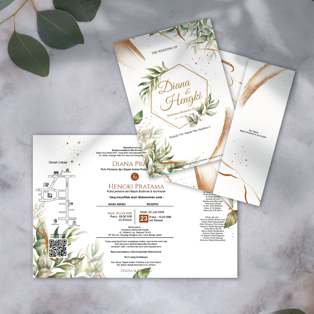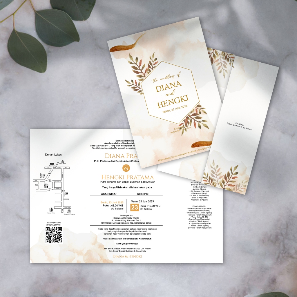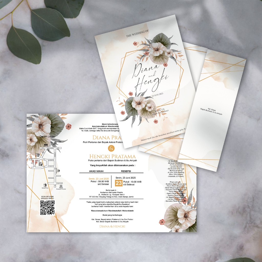 undangan lipat 3 modern rustik sembur kekinian / undangan pernikahan nikah khitan sunat murah malang