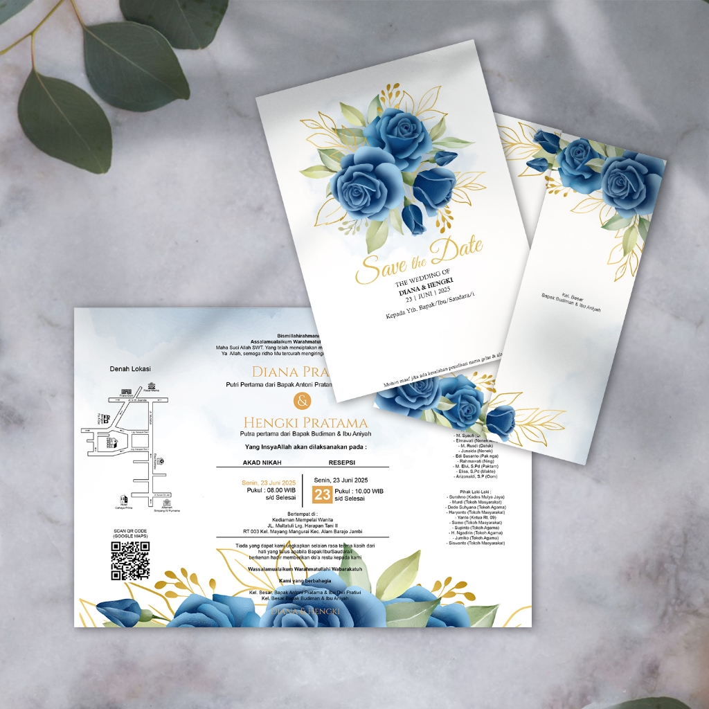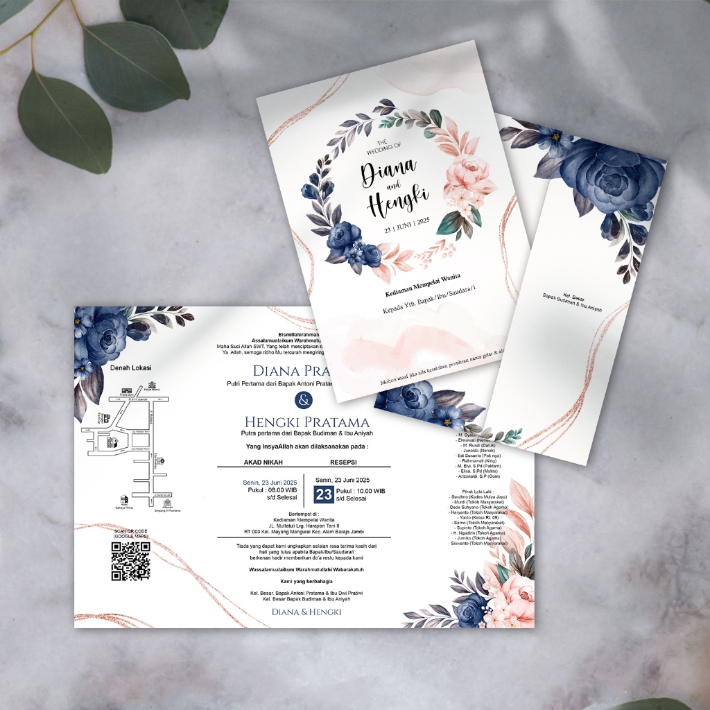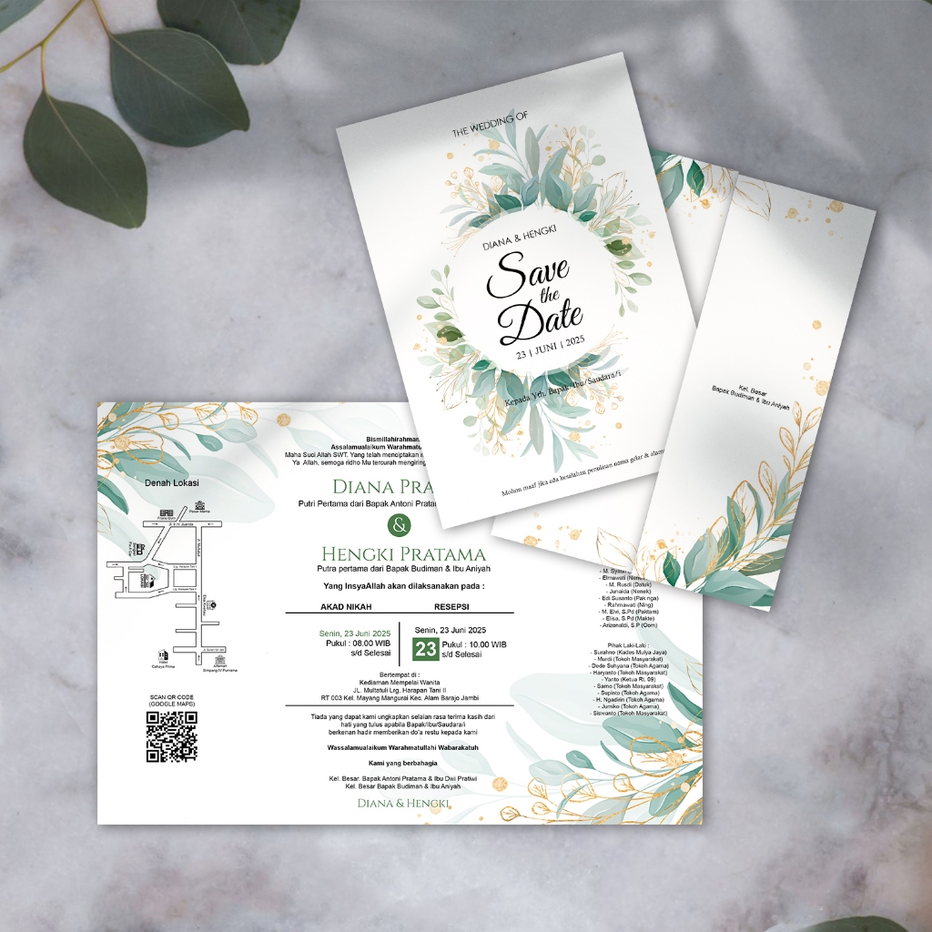 undangan lipat 3 modern rustik sembur kekinian / undangan pernikahan nikah khitan sunat murah malang