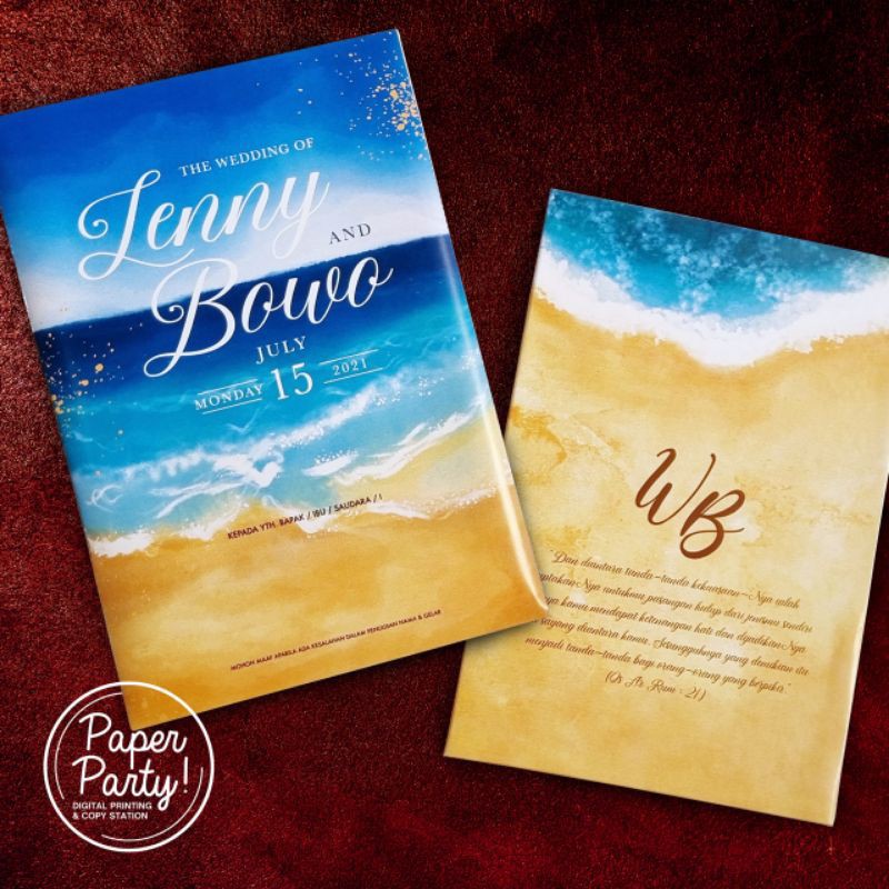 undangan single hard karton + amplop tema pantai