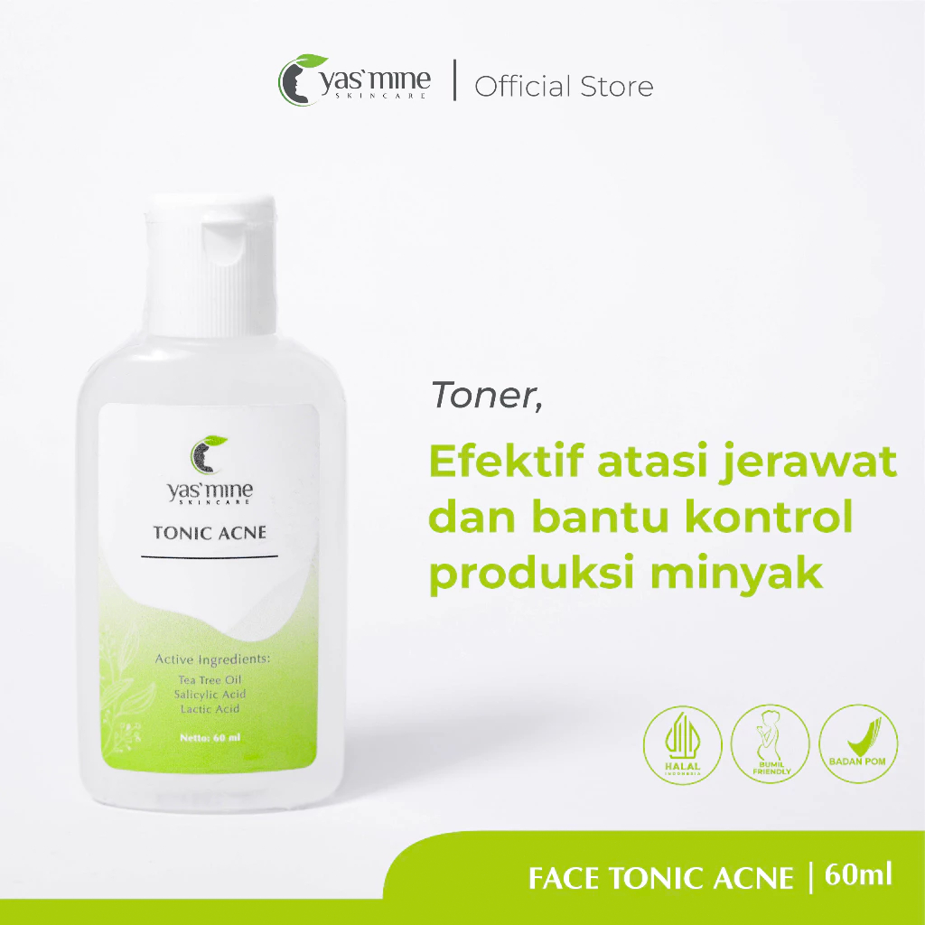TONER ACNE 60ml / Yasmine Skincare Toner Penyegar & Pembersih untuk Kulit Berminyak & Berjerawat
