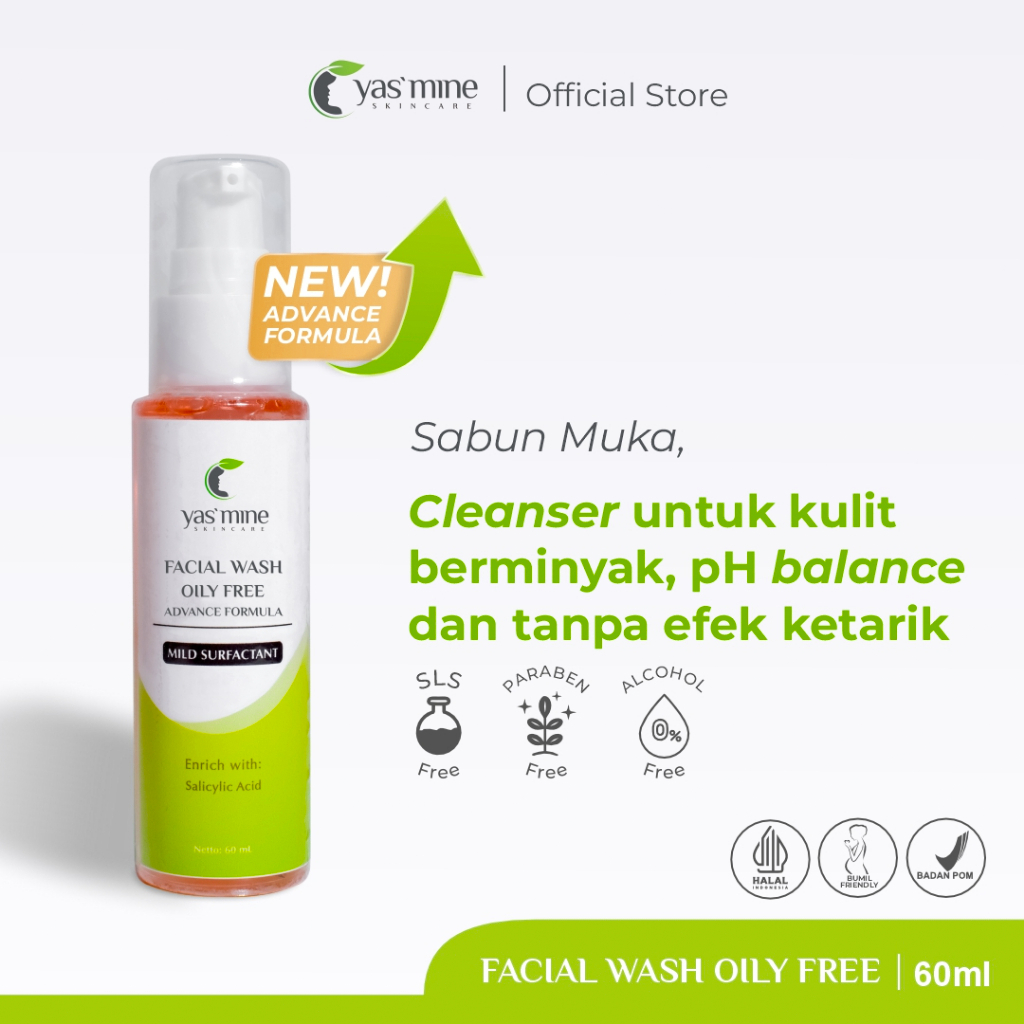 FACIAL WASH OILY FREE / Yasmine Skincare Sabun Cuci Muka Kulit Berminyak Non SLS pH 5.5 60ml