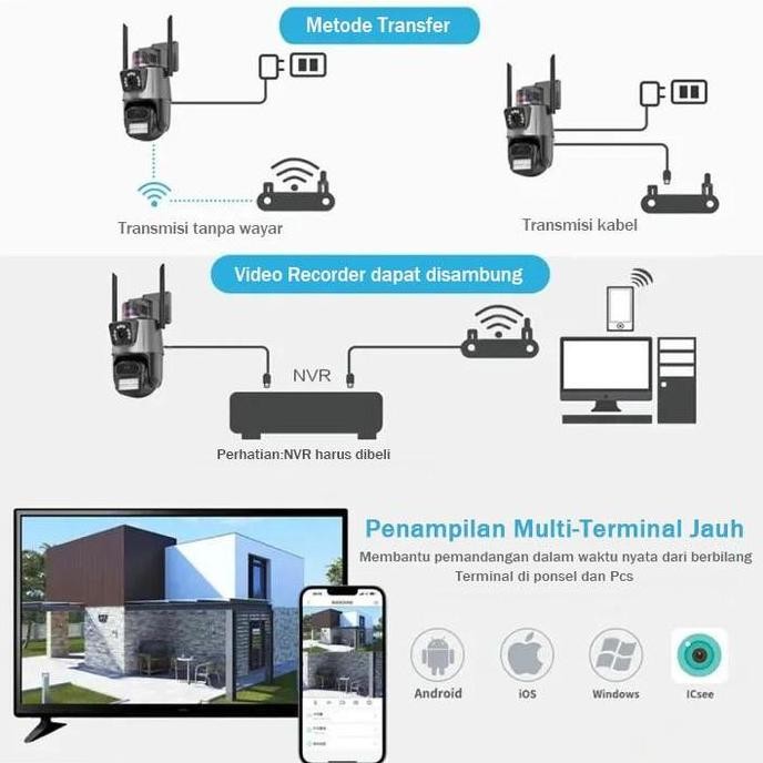 urus COD,Kirim Sekarang V380 pro CCTV camera Dual Lens WiFi Kamera 4K Panorama 360 Outdoor IP67 Waterproof CCTV 8MP HDNight Vision Alarm
