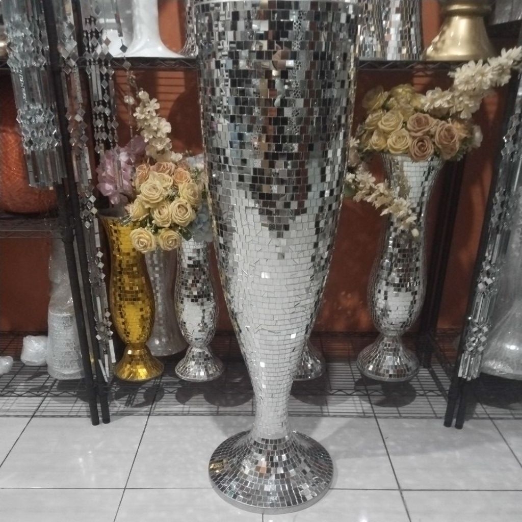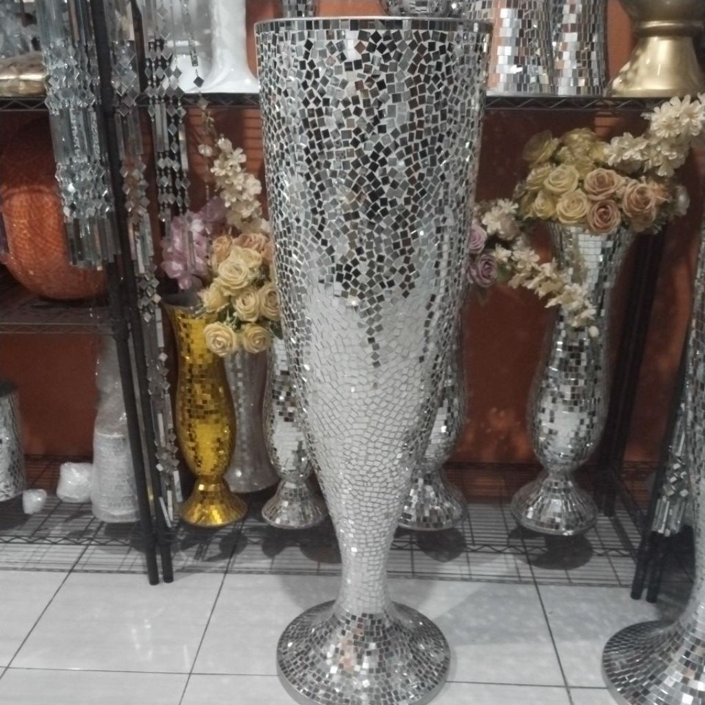 vas bunga fiber mozaik kaca