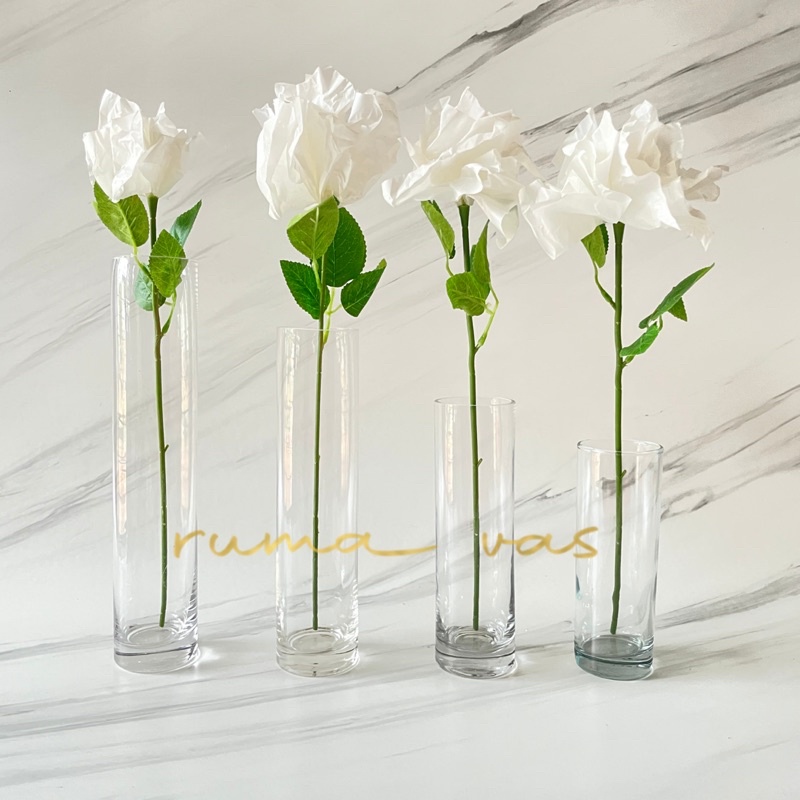[ OJOL ] vas bunga tabung kaca diameter 6cm tinggi 16cm 20cm 25cm 30cm kaca tebal elagan dekorasi rumah foto shoot 6x15 6x20 6x25 6x30 vas silinder bambu kaca mewah
