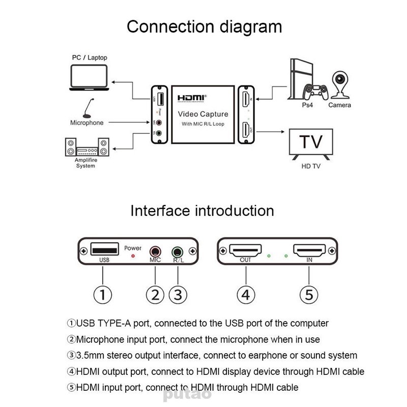 video capture usb 3.0 with loop 4k audio stereo R/L