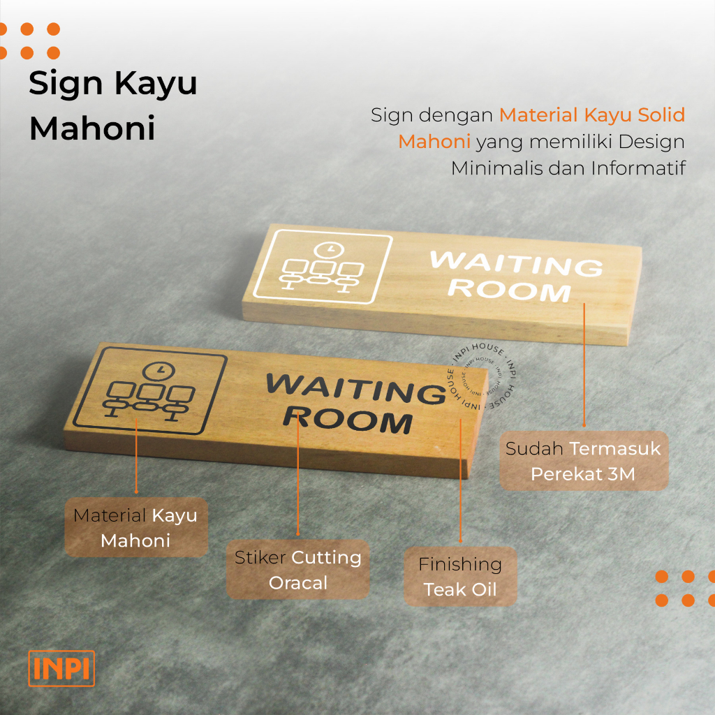 INPI HOUSE Signage Waiting Room - Papan Tanda Ruangan Tunggu - Kayu