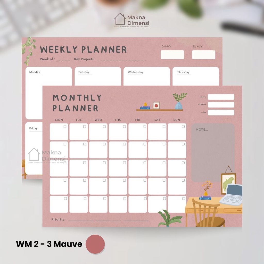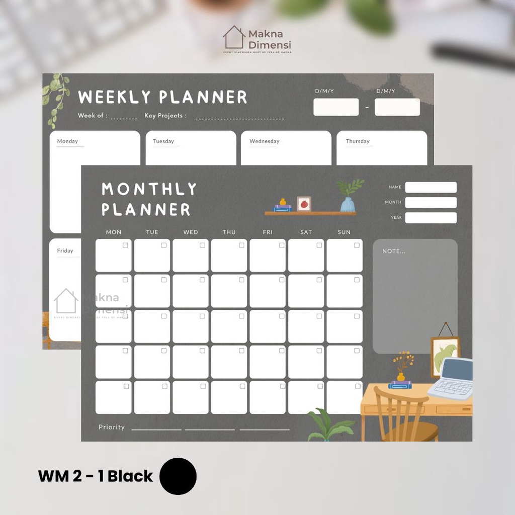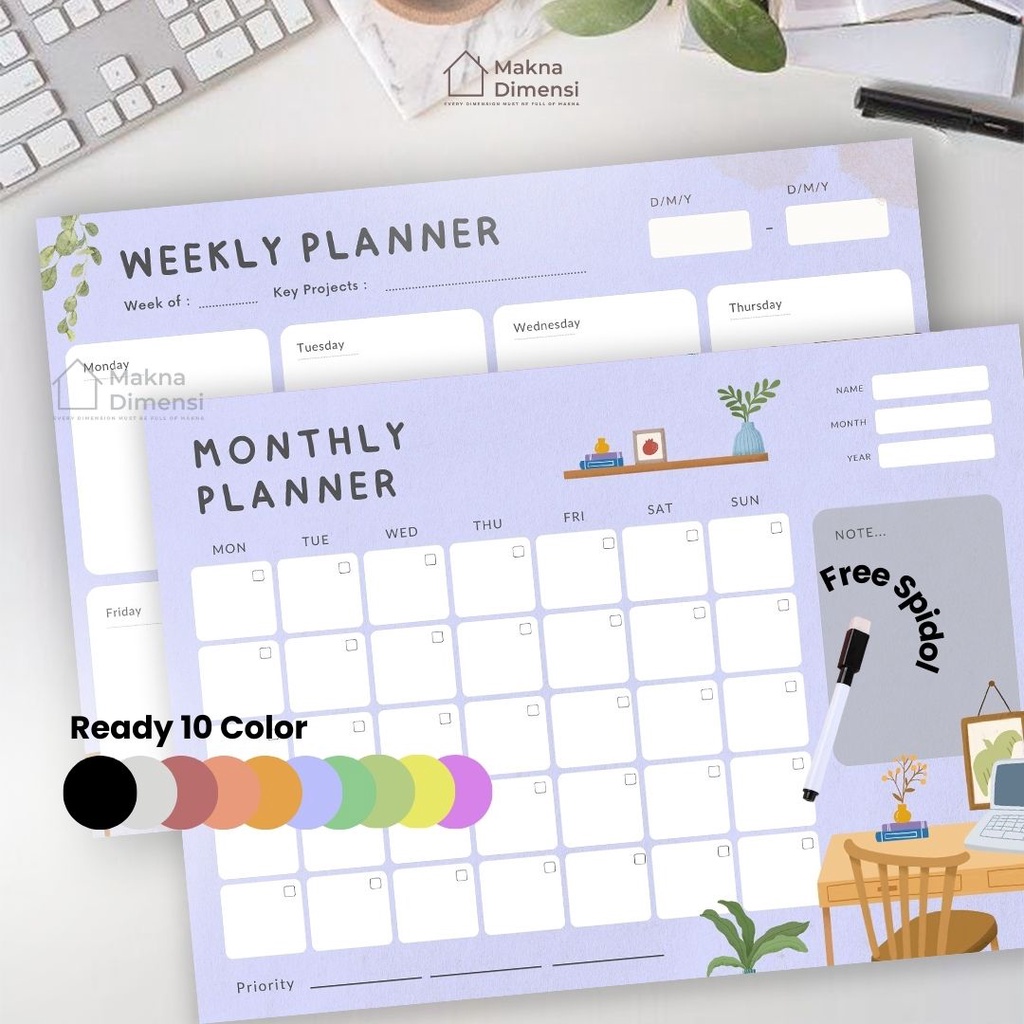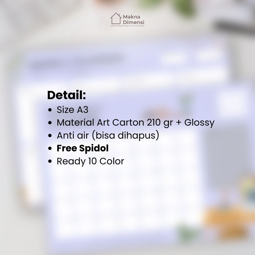 Wall planner tempel (pict) agenda A3 (free 1 pcs spidol) makna dimensi weekly planner monthly planner jurnal harian