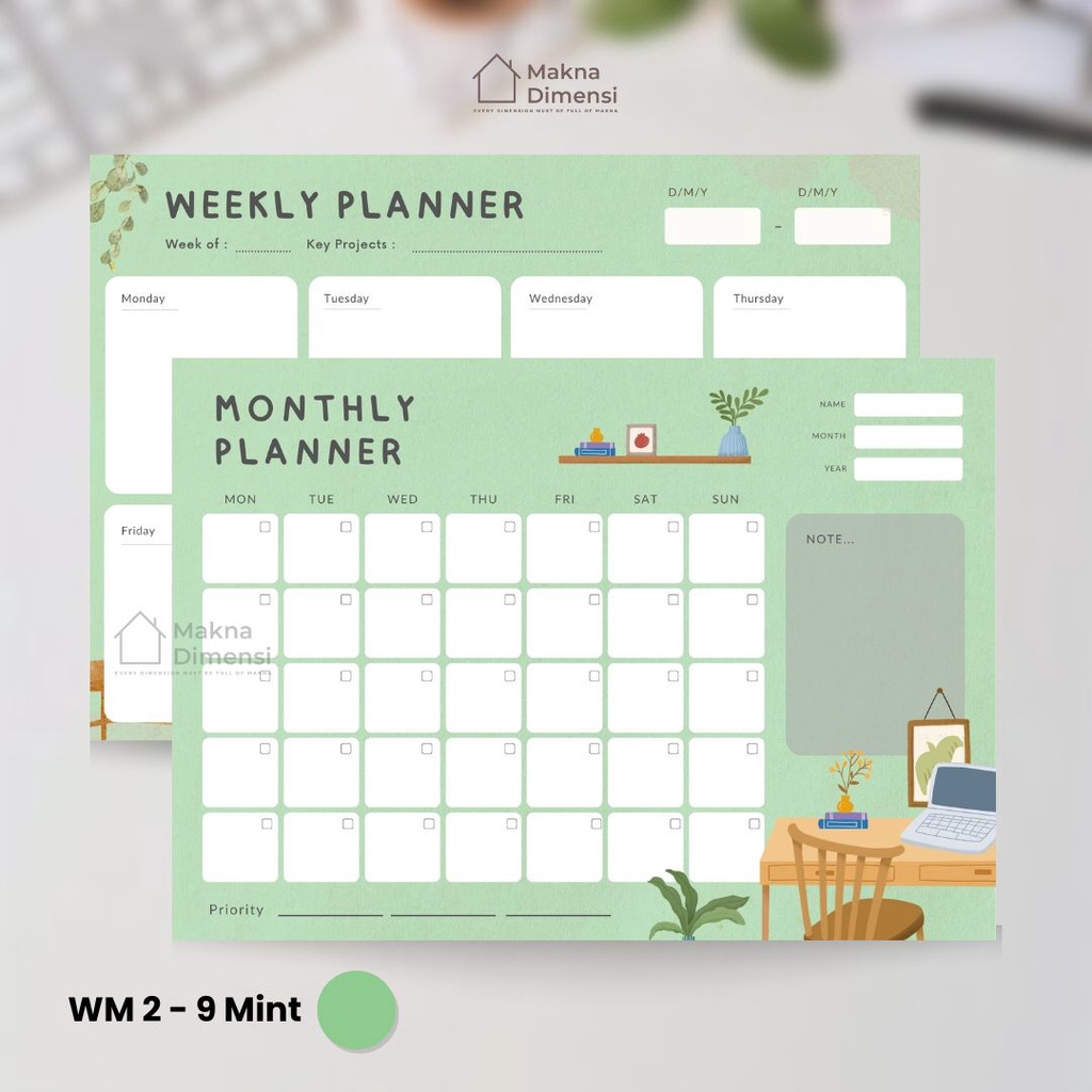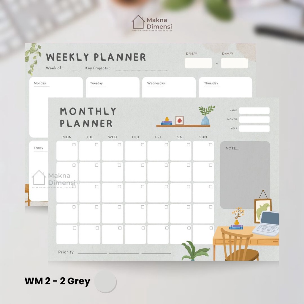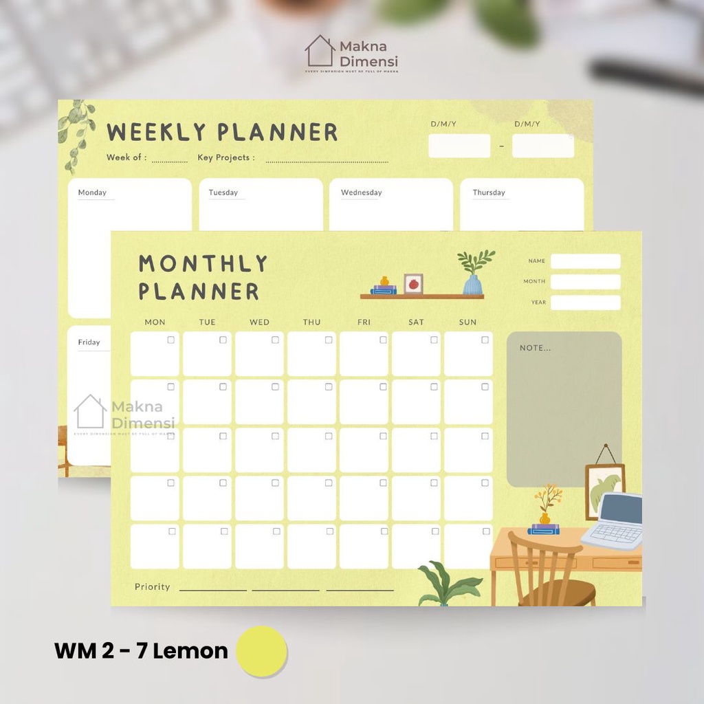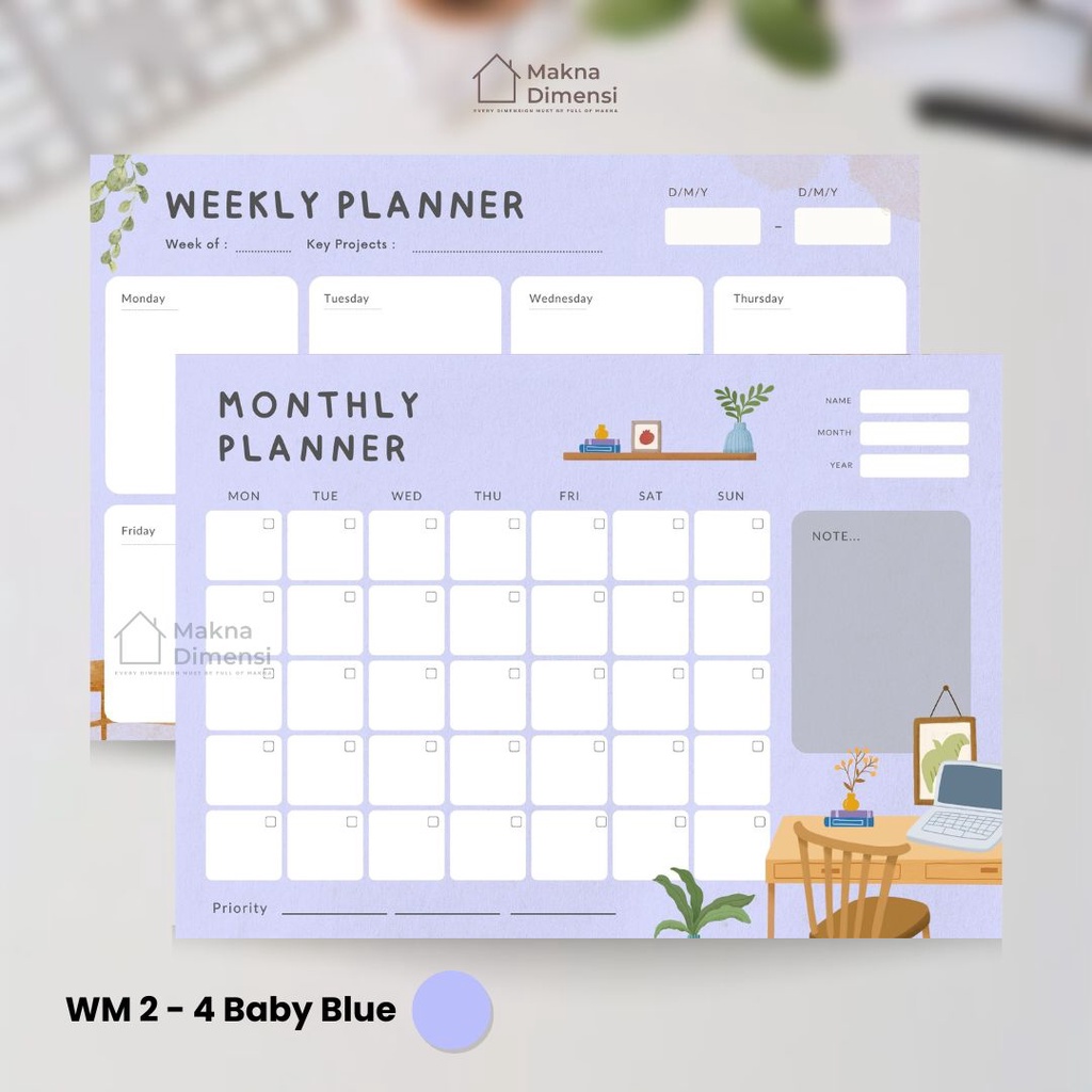 Wall planner tempel (pict) agenda A3 (free 1 pcs spidol) makna dimensi weekly planner monthly planner jurnal harian