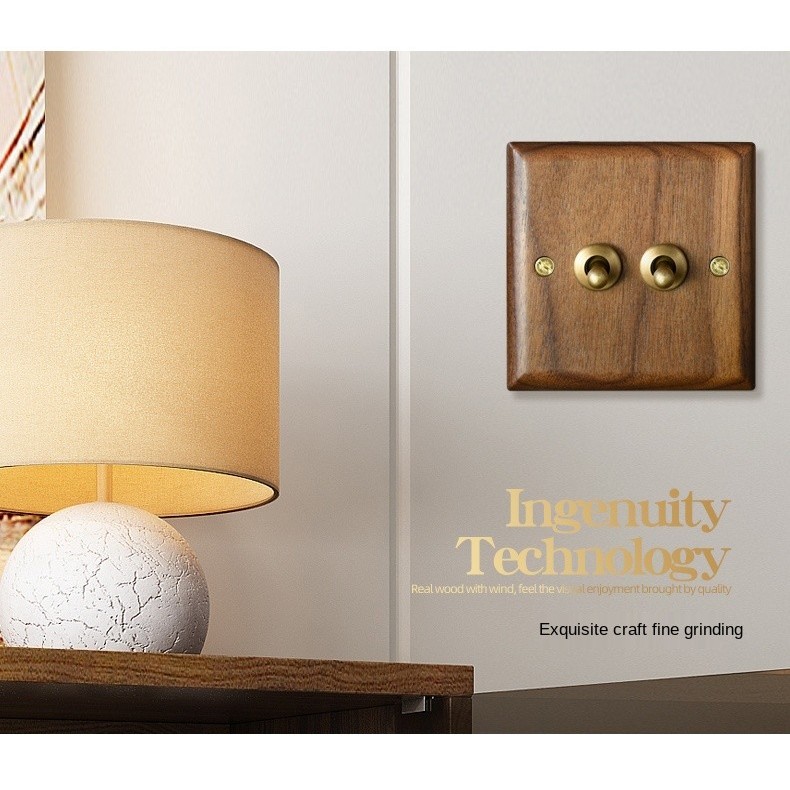 wall wood switch panel saklar dinding single kayu klasik cafe retro stop kontak motif kayu