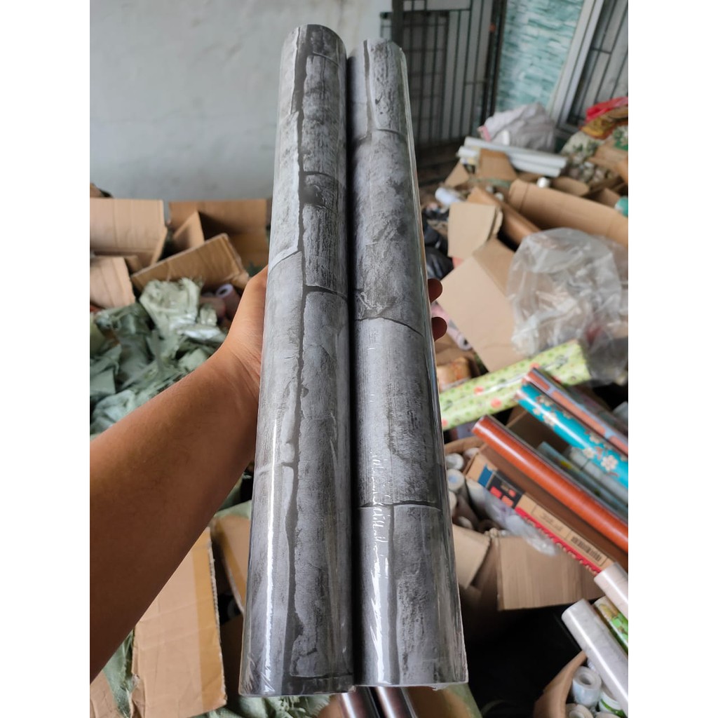 walpaper stiker batu alam abu gradiasi acak 45cm x 10m murah