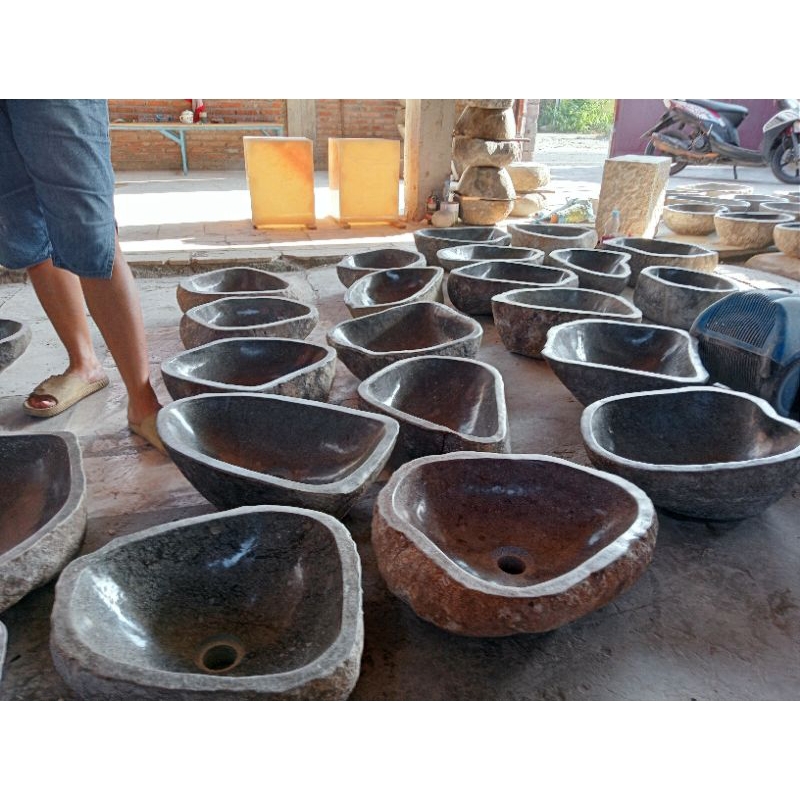 wastafel batu alam