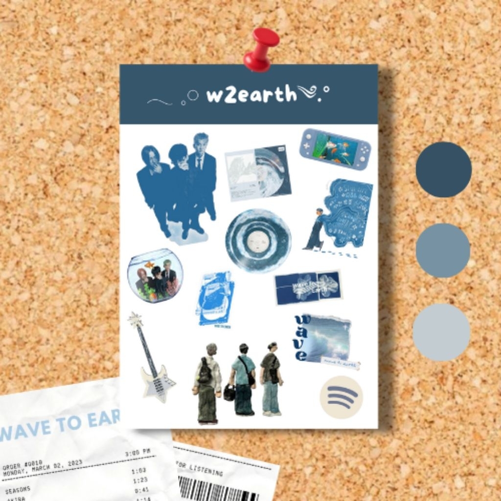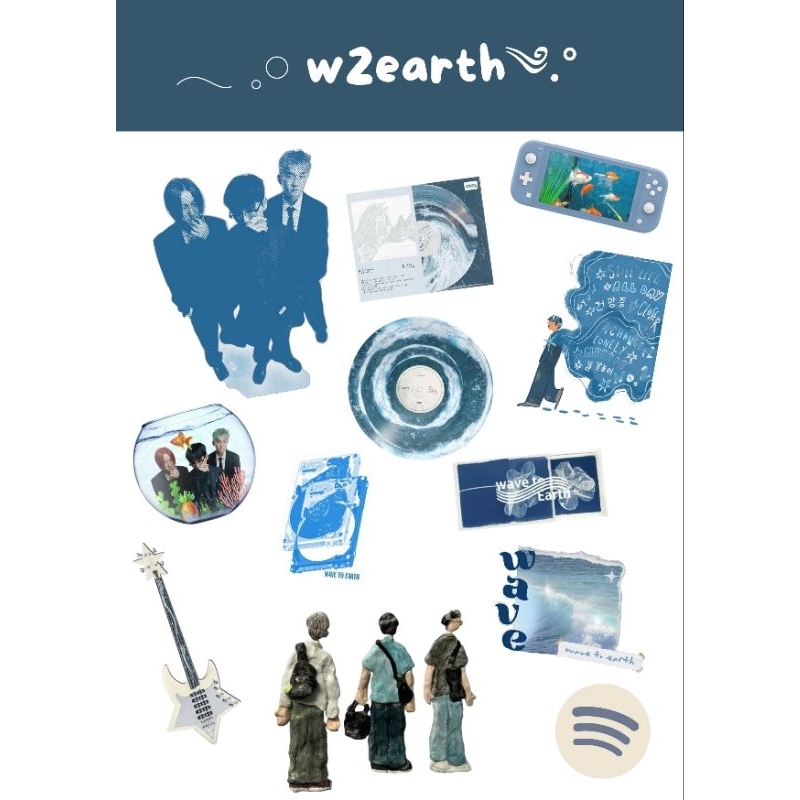 wave to earth / w2e / sticker sheet ocean blue retro sheet sticker A6 stiker aesthetic dekorasi stiker lucu