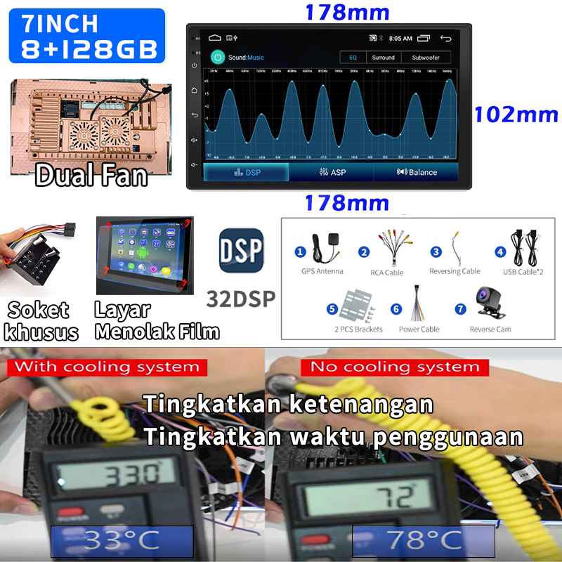 with cooling system 4G+32G IPS Screen Head Unit 7/9/10 Inch Car Android 13 Navigasi Untuk TOYOTA Daihatsu Mitsubishi android mobil 10 inch ram 4 HONDA SUZUKI Hyundai NISSAN Double Din tv mobil android