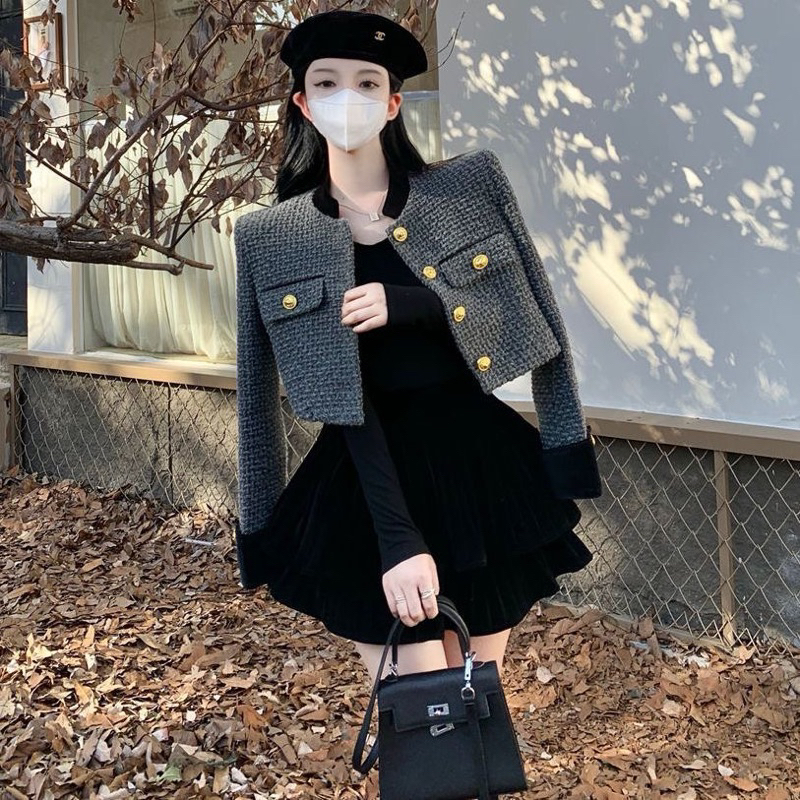 ww.coid — Crop Blazer Tweed Wool Full Furing Premium Quality