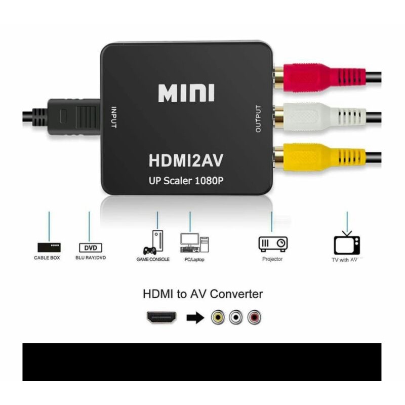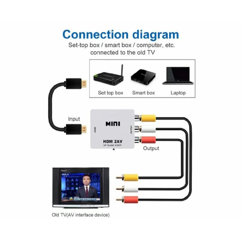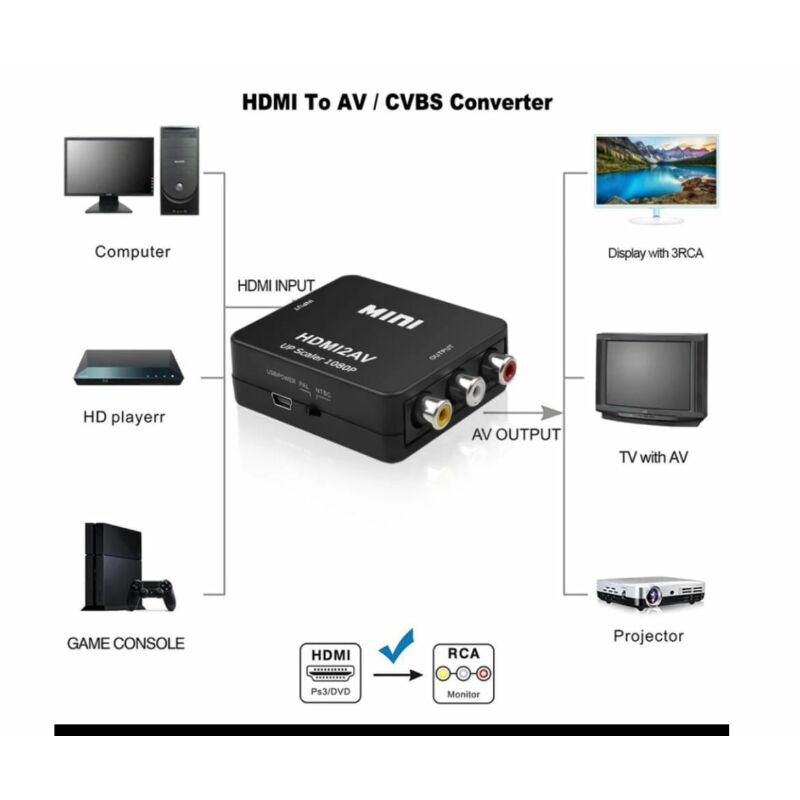 paket xon video audio konverter hdmi to av rca adapter full hd 1080p PAL ntsc output tv tabung monitor portable mobil kabel