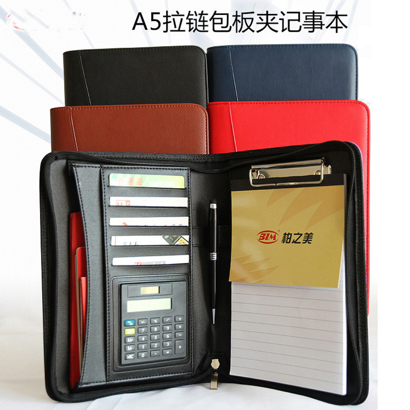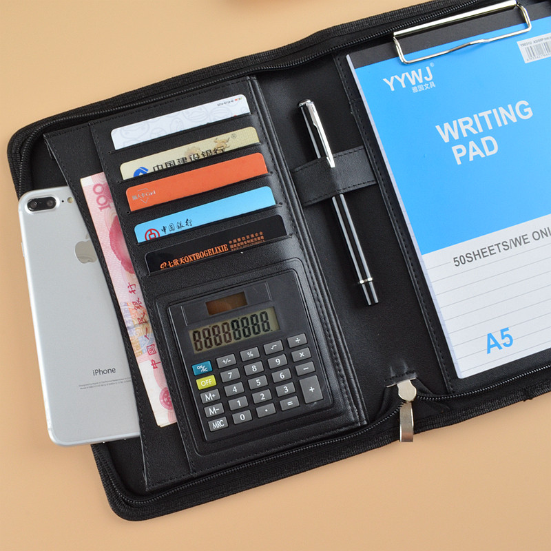 zipper A5 notebook planner sketch composition book zipped office file folder filing padfolio folders with calculator writing pad