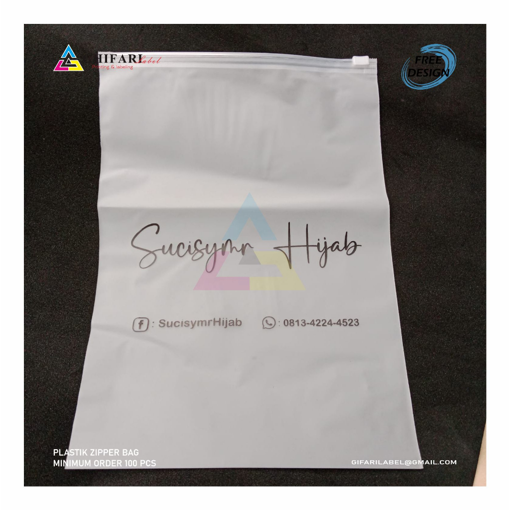 zipper bag custom desain minimal 50pcs / zipper sablon / zipper bag hijab / plastik zipper pouch / Ziplock Pouch / plastik hijab / zipperbag / pouch